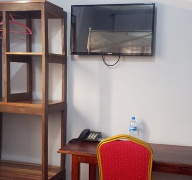Experience superior comfort in our spacious deluxe rooms, featuring modern air conditioning, en-suite bathroom, work desk, Smart flat-screen TV, complimentary Wi-Fi, clothes Rack, linen, daily housekeeping & free toiletries These rooms blend contemporary style with functionality, providing a peaceful retreat after a day of safari adventures or business meetings.