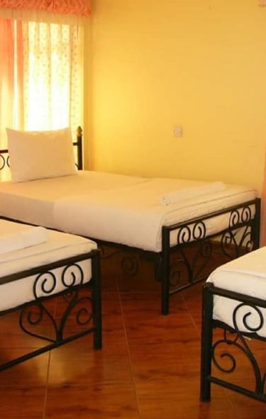 Perfect for families or small groups exploring Tanzania together. Our spacious triple rooms comfortably accommodate three guests, feature air conditioning and a Fan for enhanced comfort. Equipped with three beds or one double and one single, en-suite bathroom, Smart flat-screen TV, complimentary Wi-Fi, daily housekeeping and free toiletries. An economical and comfortable option for safari groups or families.